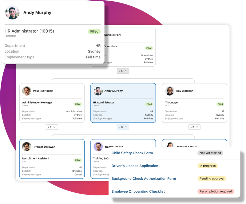 Your one employee source of truth, updated in real time across every module. No more manual reconciliations — just accurate insights decision-makers can act on.