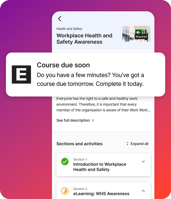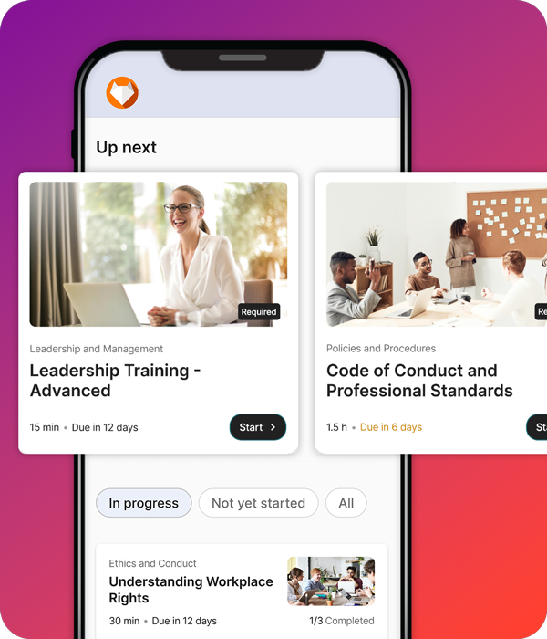 Take the stress out of mandatory learning. Automatically assign training based on role, department or location, track completions and expiry dates, and generate compliance reports in minutes. You’ll always know where your team stands.