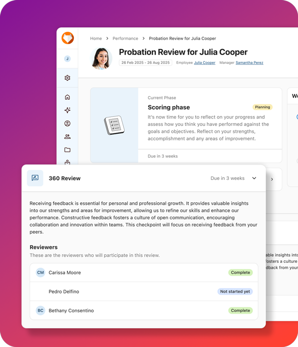 Slash performance admin. Remove manual burden with configurable performance review workflows, automatic reminders and check-ins.